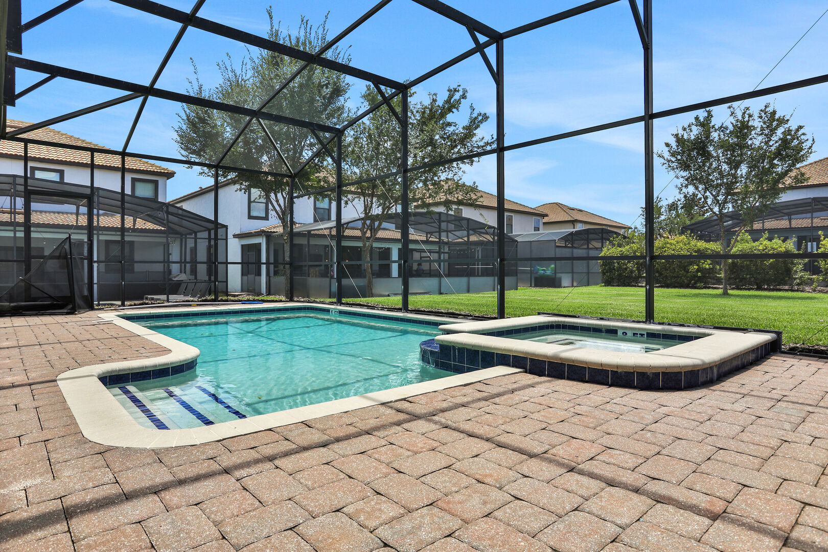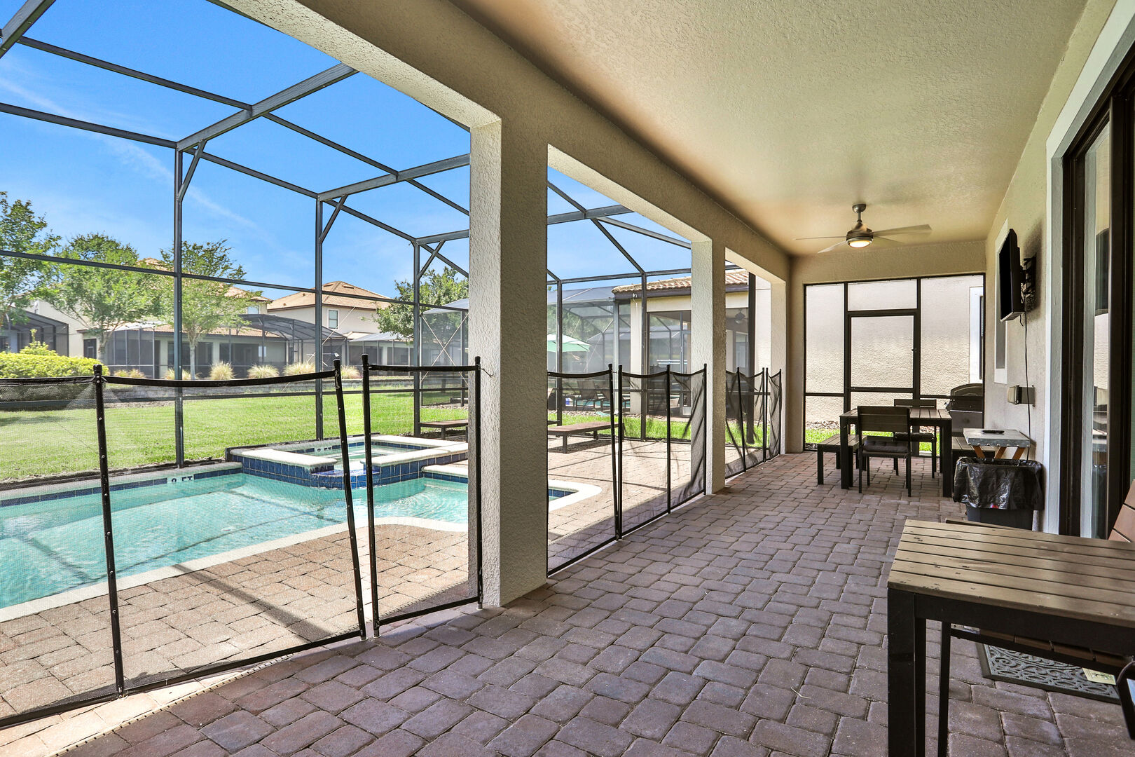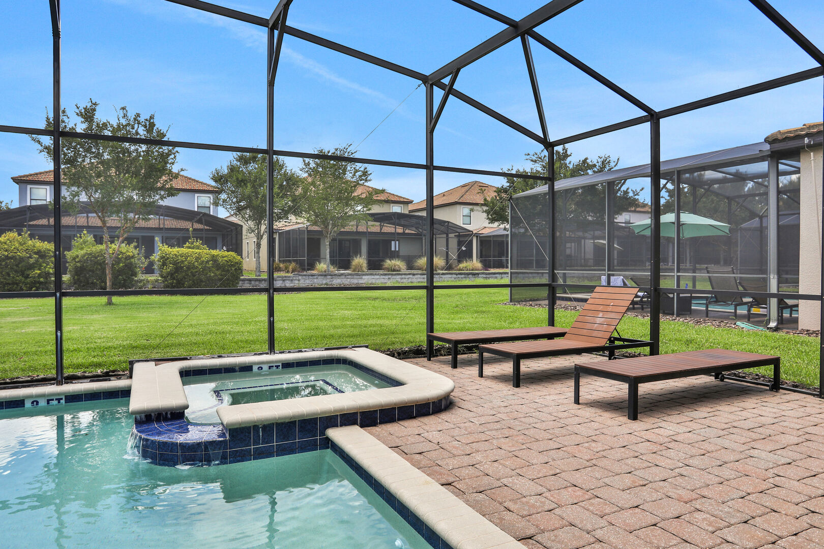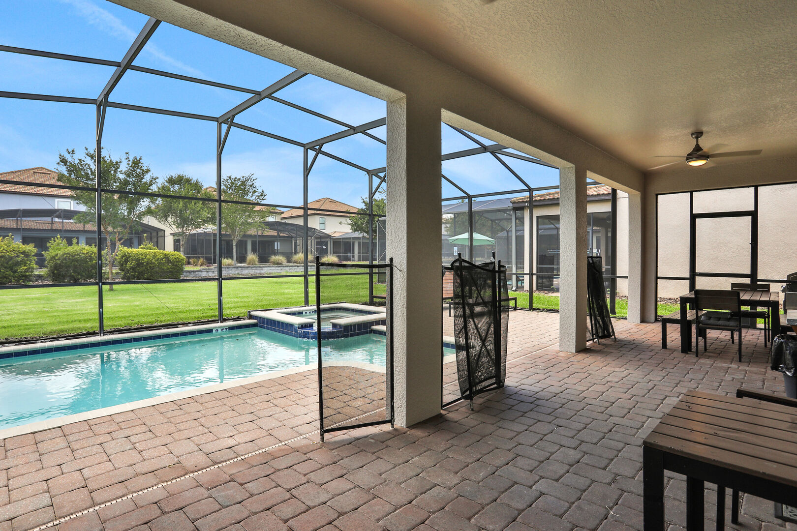 Outside, you'll find your own private pool, ideal for soaking up the Florida sun or enjoying a refreshing dip after a day of adventure. The community also offers a communal pool for additional leisure options. For those seeking fun indoors, the game room provides hours of entertainment with various games and activities.