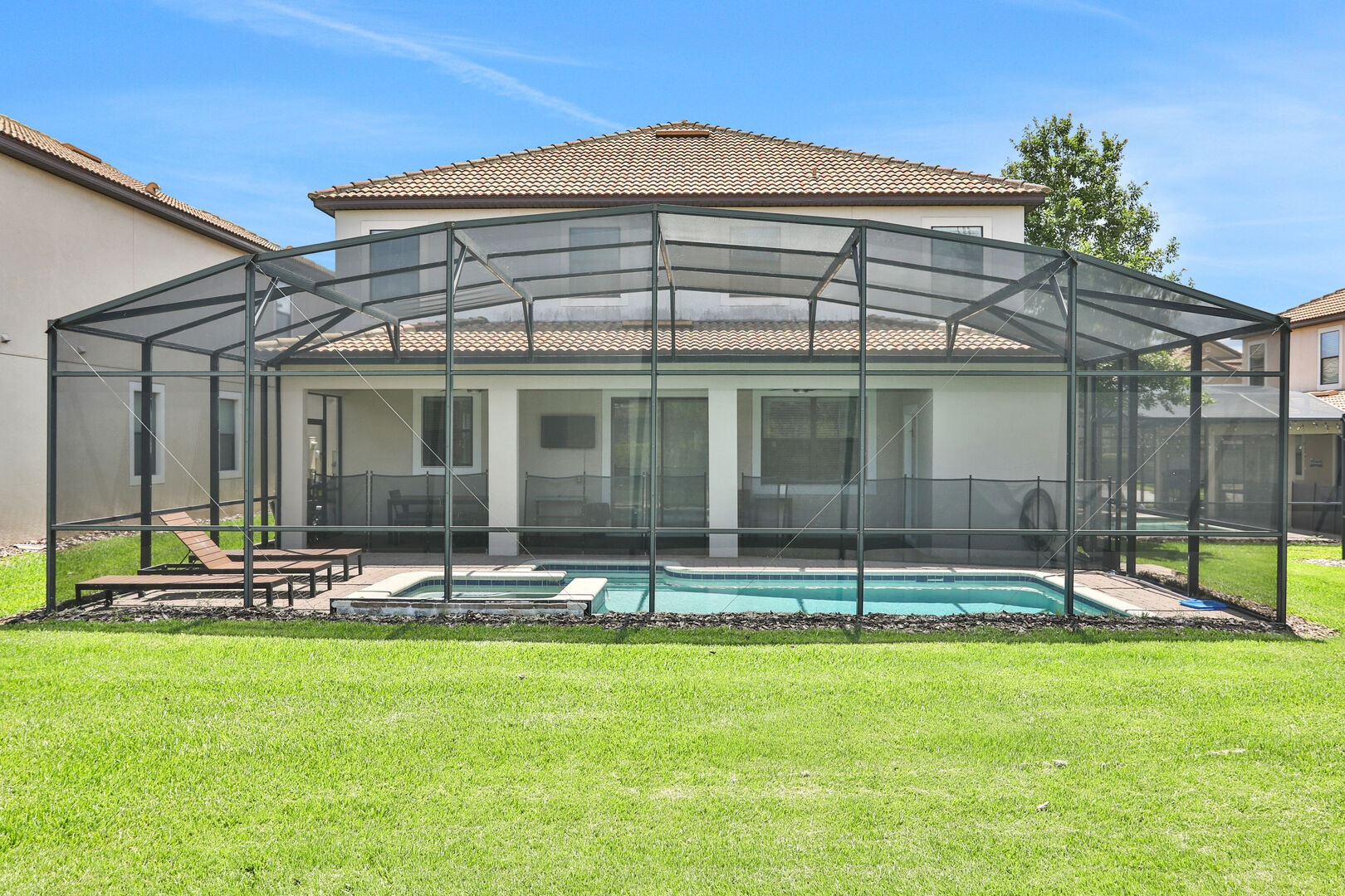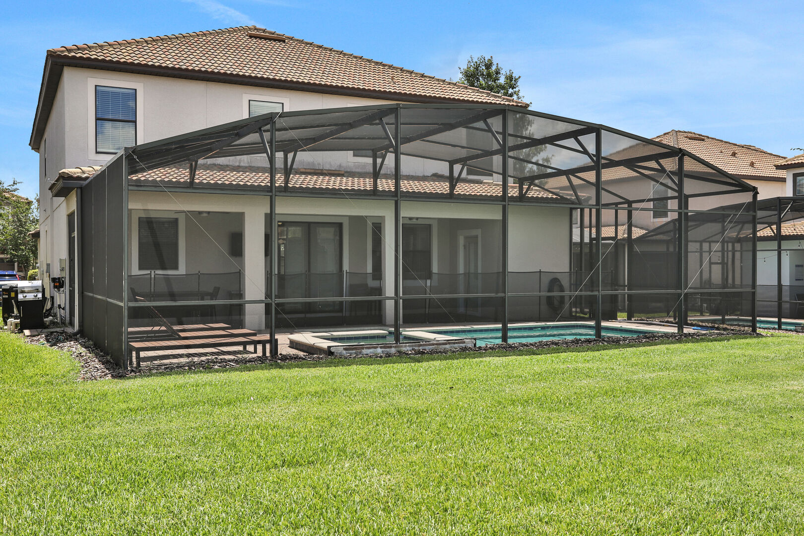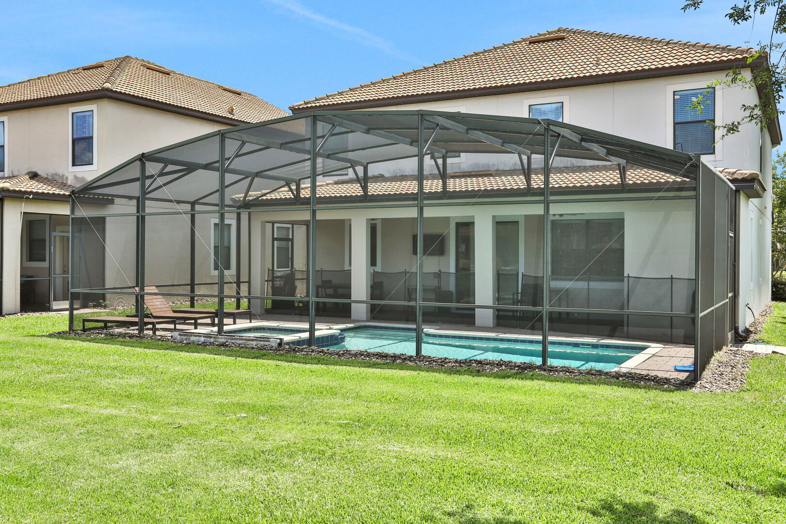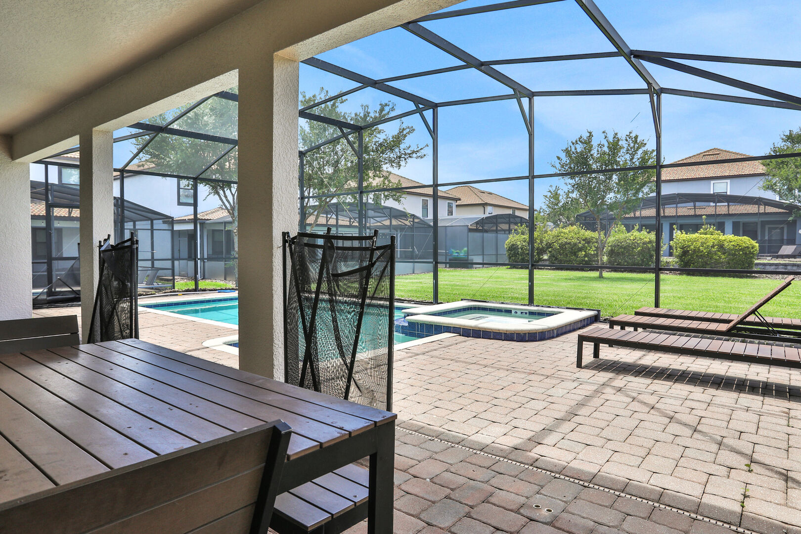 Outside, you'll find your own private pool, ideal for soaking up the Florida sun or enjoying a refreshing dip after a day of adventure. The community also offers a communal pool for additional leisure options. For those seeking fun indoors, the game room provides hours of entertainment with various games and activities.