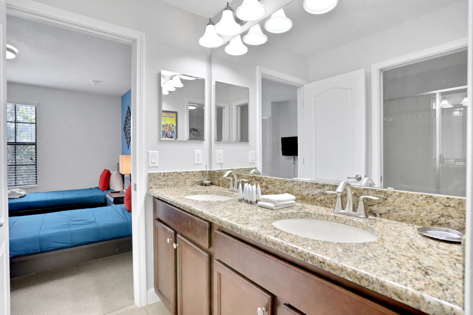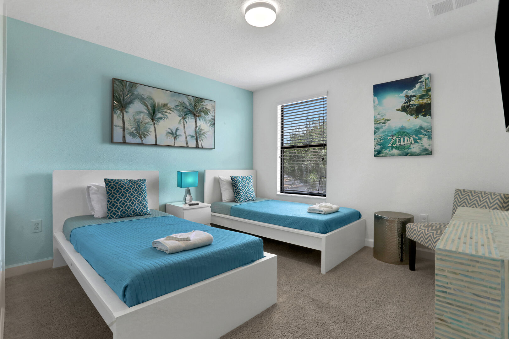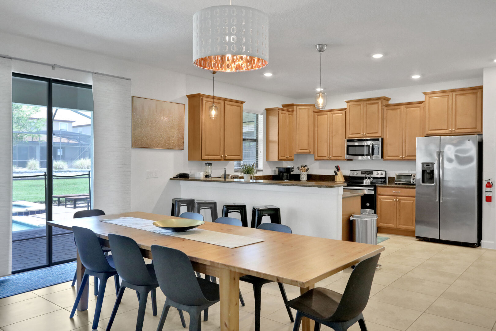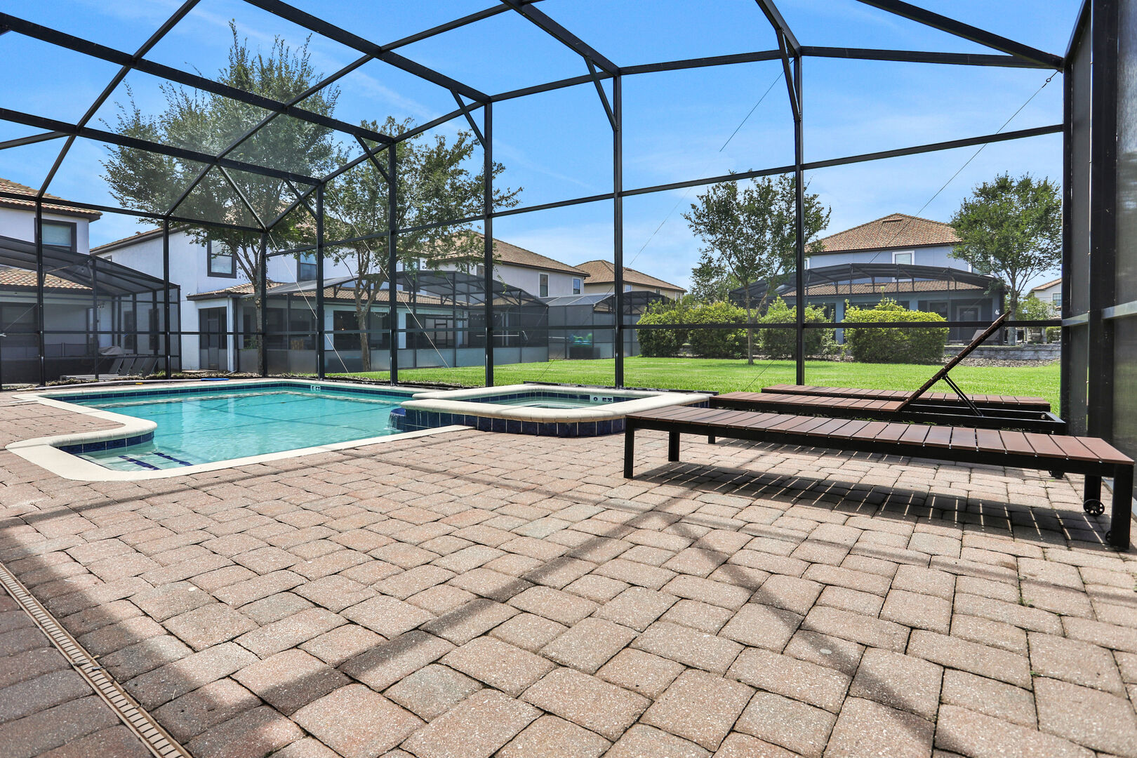 Outside, you'll find your own private pool, ideal for soaking up the Florida sun or enjoying a refreshing dip after a day of adventure. The community also offers a communal pool for additional leisure options. For those seeking fun indoors, the game room provides hours of entertainment with various games and activities.