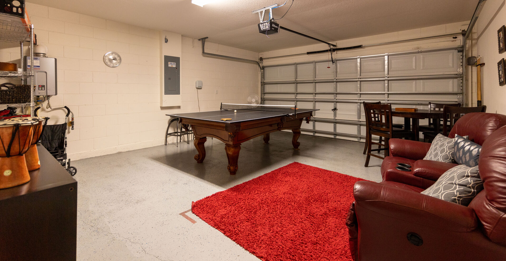 The garage features a games room with pool table and seating.