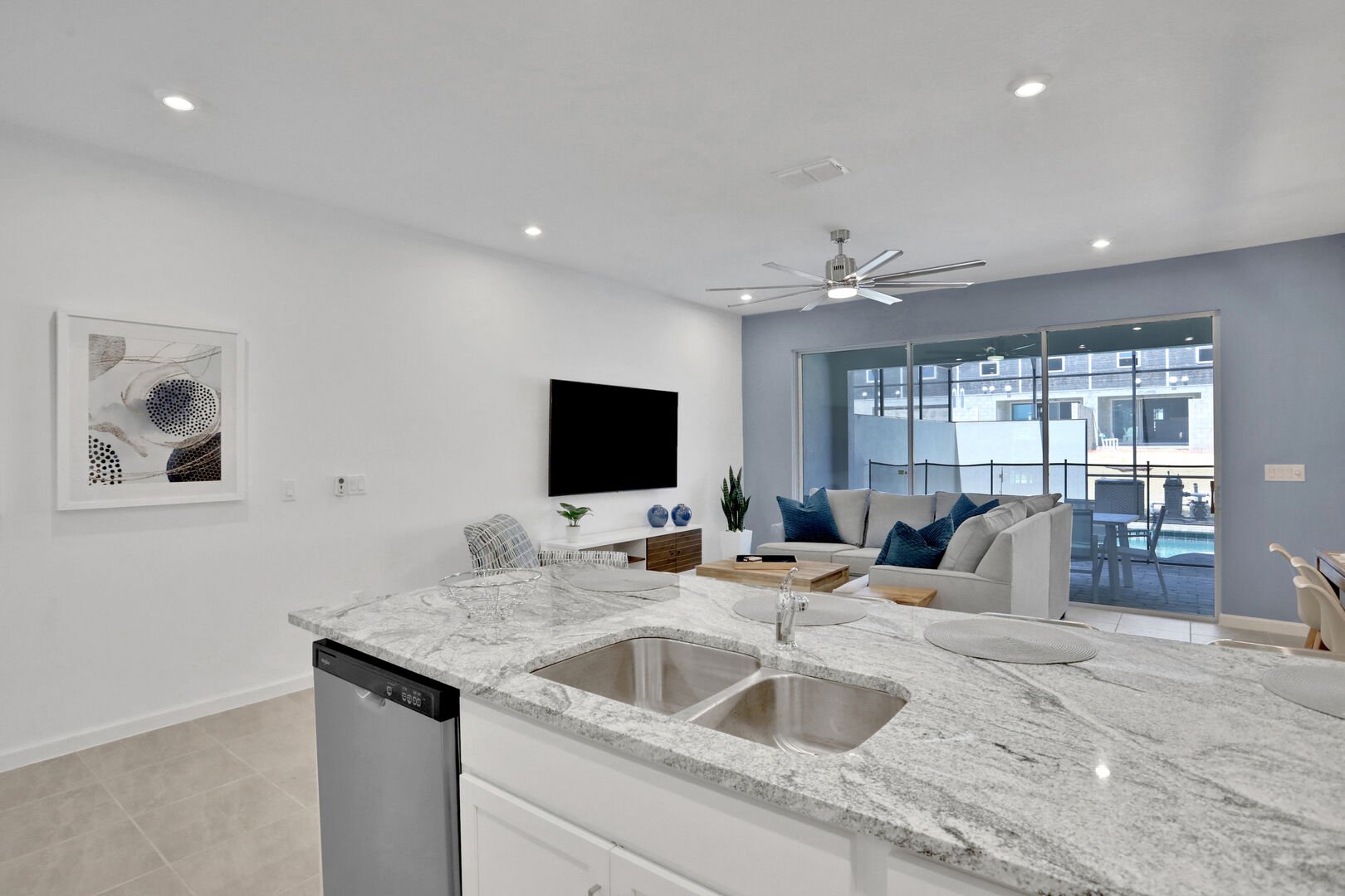 Private Pool and Outdoor Oasis: Step outside to your private screened-in pool area, a serene haven perfect for soaking up the Florida sunshine. Enjoy refreshing swims, lounge on comfortable patio furniture.
