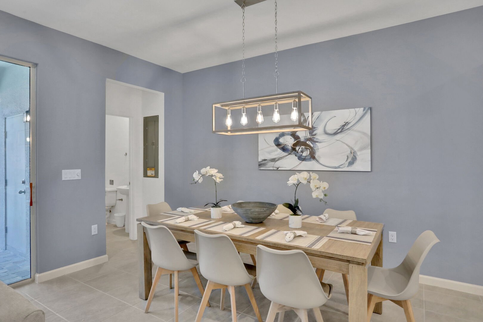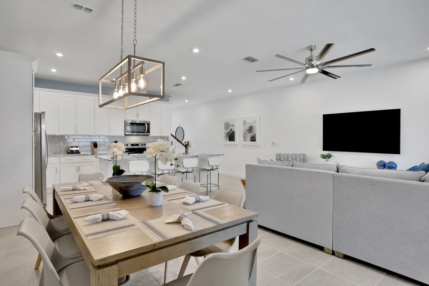 Bright and Spacious Living Areas: Step inside to find an open-concept living space, bathed in natural light and tastefully decorated with contemporary furnishings. The expansive living room is perfect for relaxing or entertaining, featuring plush seating and a large flat-screen TV. Adjacent, the sophisticated dining area provides ample space for memorable meals together.