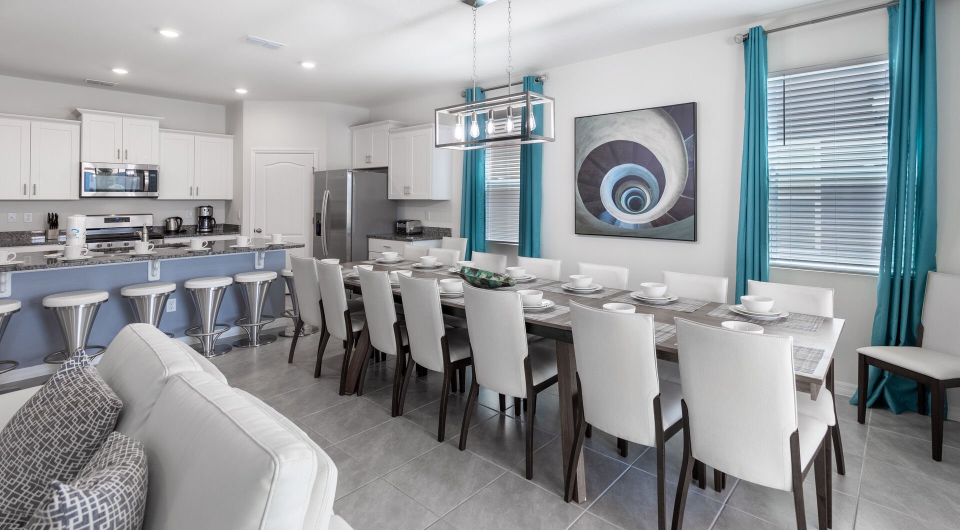 Living areas of our Orlando kid-friendly vacation rental homes boast beautiful and stylish furnishings, beautiful décor with whimsical movie and TV character-theme touches, and more that make you and every member of your family feel as if you’re already out enjoying Orlando’s can’t miss kid-friendly activities, even when you’re cozied up inside. Gather everyone around the unit’s entertainment center for a fun movie night, or to watch the next episode of a favorite TV show together or play a video game in select rentals. Many of our kid-friendly Orlando vacation rentals include flat screen TVs, all the electronics you’ll need, and a movie library or streaming capabilities perfect for a fun-filled time with family favorite movies and shows. In an Orlando kid-friendly vacation rental provided by Tropical Escape Vacation Homes, spaces flow together, easily connecting rooms so everyone in the family can stay a part of the vacation fun from anywhere in the living space.